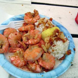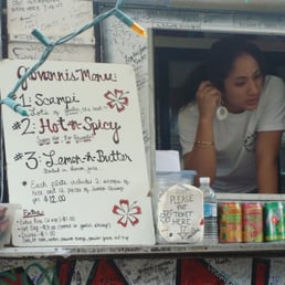 The line is long, but moves decently fast. There is shaded. seating right in front of the truck, but you may need to fight some people for seating. If you lose, the rest of the seating areas are in the blazing sun. The scampi is oily and has loads of garlic. The hot&spicy has a buffalo type of spice to it. It is on the spicier side. I love spice and have quite a high tolerance, so it wasn't too spicy, but I've heard others complains, so beware. Overall, tasty shrimps. The rice is a little too mushy for me. But I do think it's over hyped. I'm from California, and I've had similar and better. If you have time or you're around, try it out, but if you can't, nothing to be sad about.